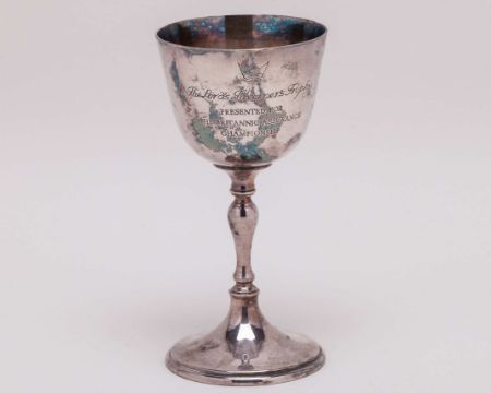 Ian Botham, a silver-plated Worcestershire C.C.C. County Champions 1988 goblet, the goblet a replica of the trophy, presented to Botham for being a member of the Worcestershire team who won the County Championship in 1988, inscribed 1988. Worcestershire County Cricket Club. I.T. BOTHAM, The Lord Taverners Trophy. Presented for the Britannic Assurance Championship, 15cm high
