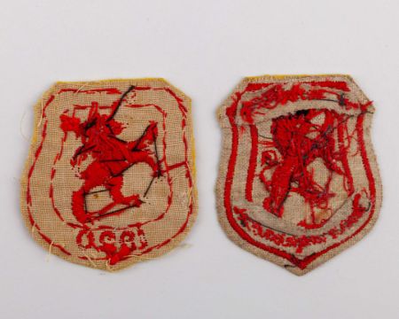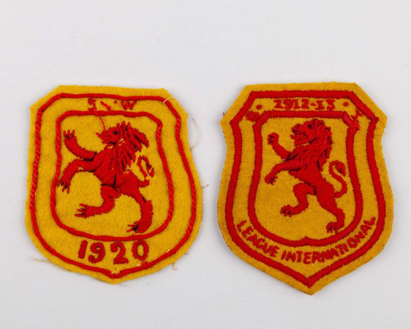 James Reid two Scotland official shirt badges, 1912-13 and 1920, one embroidered 1912-13 S : I, LEAGUE INTERNATIONAL, the other S v W 1920