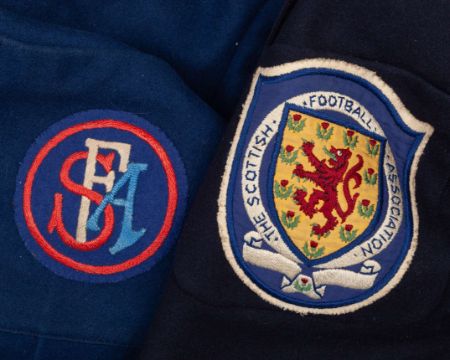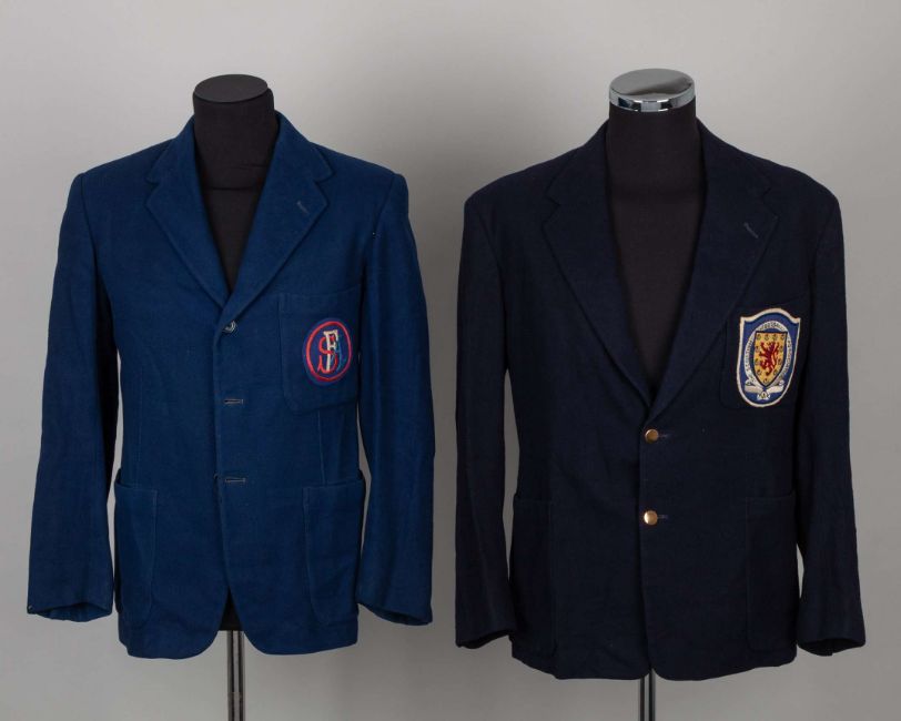 Allan Brown a blue Scotland International blazer with embroidered badge6 inscribed THE SCOTTISH FOOTBALL ASSOCIATION and another SFA example (2)