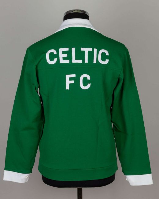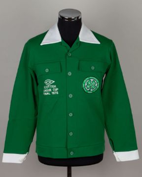 Green and white Celtic v. Rangers 1978 League Cup tracksuit top, Umbro, MEDIUM, with button-up front and embroidered cloth badge inscribed THE CELTIC FOOTBALL CLUB 1888, SCOTTISH LEAGUE CUP FINAL 1978, the reverse lettered CELTIC FC In the final played on 18th March 1978 at Hampden Rangers defeated Celtic 2-1 after extra-time