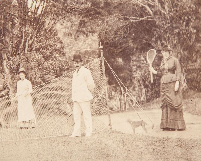 Historical Victorian photograph of lawn tennis at Strawberry Hill House circa 1874 ,