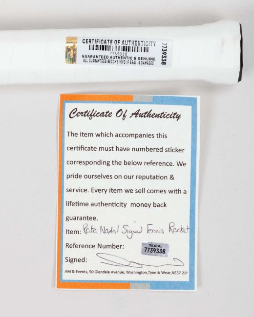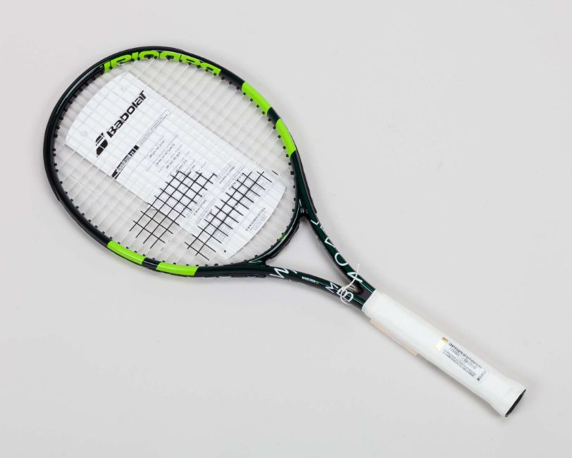 Rafael Nadal autographed green, black and white Babolat Wimbledon 27 racket, 105sq.in head size, autographed on the handle, with COA