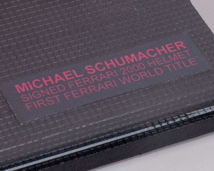 Personally signed by the 7-time F1 World Champion, representing Schumacher's first Ferrari Driver's World Championship.