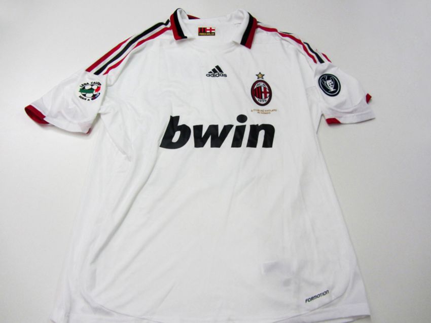 Thiago Silva: a white AC Milan No.33 jersey season 2009-10, short-sleeved, the reverse lettered T. SILVA