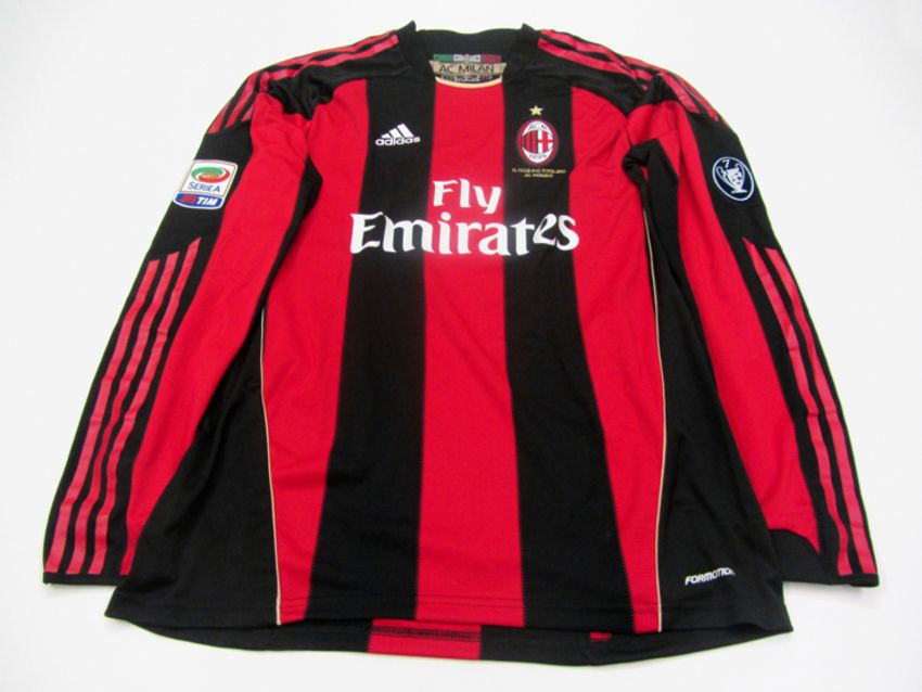 Antonio Cassano: a red & black striped AC Milan No.99 jersey Serie A jersey season 2010-11, long-sleeved, Serie A TIM & 7 times European Champions badge, the reverse lettered CASSANO Provenance: Former FC Inter Team Director