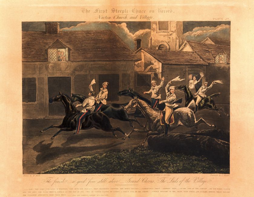 After Henry Alken (1785-1851) THE FIRST STEEPLECHASE ON RECORD (A SET OF FOUR) engraved by J. Harris, aquatint, first published by Ben Brookes, London 1839, each image 26.5 by 37cm., 10 ½ by 14 ¼in., mounted but unframed