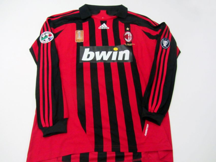 Alessandro Nesta: a signed red & black striped No.13 AC Milan jersey season 2007-08, signed on the reverse No.13, long-sleeved, the reverse lettered NESTA