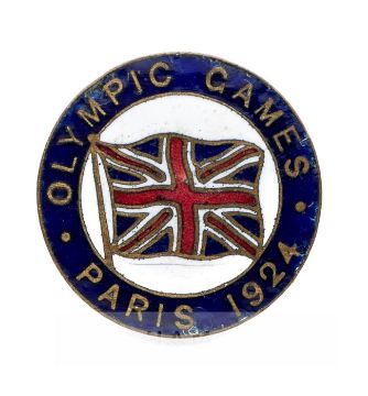 Paris 1924 Olympic Games Great Britain team lapel badge,by Fattorini & Sons, Bradford, enamelled circular badge with nation's flag surrounded by OLYMPIC GAMES PARIS 1924, diameter 22mm., some wear and slight losses to enamel at rim