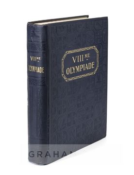 1924 Paris & Chamonix Olympic Games Official Report, Les Jeux de la VIII Olympiade Paris 1924, published by Comite Olympique Francais, extensive illustrated coverage, blue leather covers tooled with Olympic sporting motifs, gilt titling, good condition