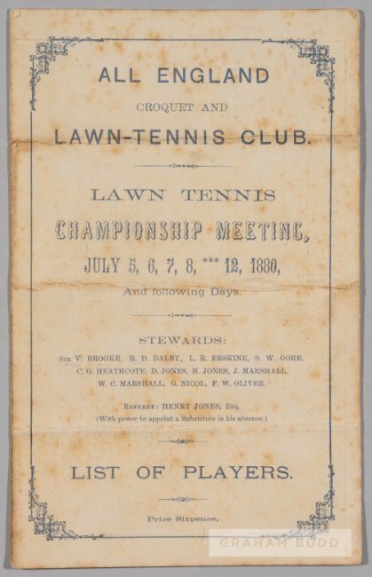 All England Croquet and Lawn Tennis Club Wimbledon programme, held on 5th to 12th July 1880,