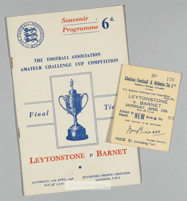 Programme and ticket for the F.A. Amateur Cup Final between Leytonstone and Barnet played at Stamford Bridge, Chelsea, 17th April 1948,