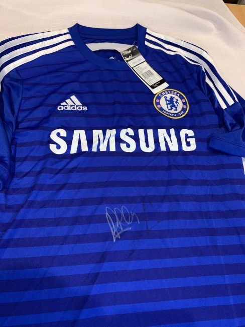 Cesc Fabregas signed blue Chelsea replica home jersey 2014-15,Adidas, short-sleeved with club crest and sponsor logo, signed in marker pen on front, with retail tag and COA and photo proof