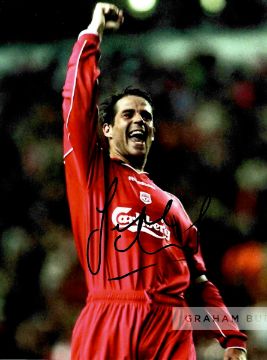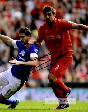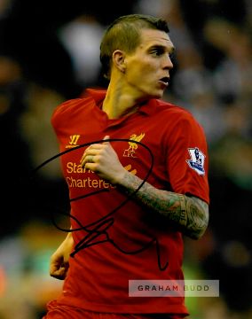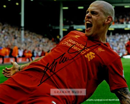 Liverpool FC collection of eleven signed photographs, including Jordan Henderson, Glenn Johnson, Stewart Downing, Alex Oxlade-Chamberlain, Jamie Rednapp, Joe Allen, Martin Skrtel, Daniel Agger, Jose Enrique, Kolo Toure, Maxi Rodriguez, 8 by 10in., with COA and photo proof, (11)