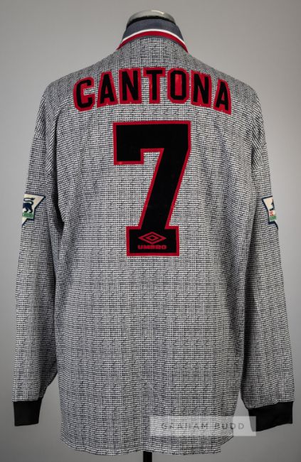 Eric Cantona "invisible grey" Manchester United No.7 away jersey season 1995-96, Umbro, long-sleeved with THE FA PREMIER LEAGUE sleeve badges, club crest and sponsor logo, reverse lettered CANTONA, size XXLThis style of jersey was worn only five times and they lot four out of the five fixtures. It is also infamous for being worn during the league fixture v Southampton, played at The Dell on 13th April 1996, when at half-time Sir Alex Ferguson ordered the team to change to their third choice jerseys due the players not recognising each other on the pitch when they wore these coloured jerseys.Shortly before the start of the 1995-96 season, the Premier League introduced a ruling that disallowed shirt makers from having their logos on the shirt numbers. Umbro had already supplied Manchester United with a quantity of kit which had to be withdrawn, this jersey being an example.