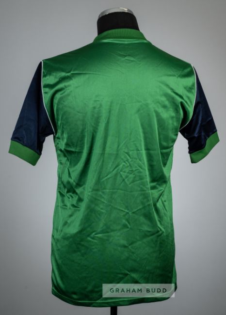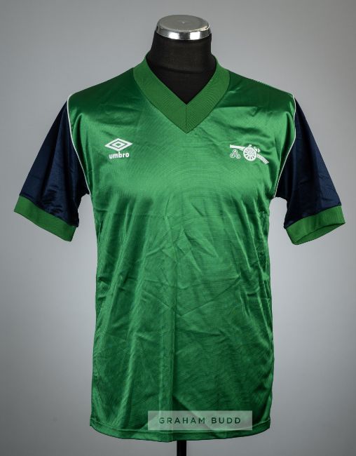 Green and navy Arsenal replica away jersey, season 1982-83,Umbro, short-sleeved with club crest and Umbro logo in felt, un-numbered, neck label removed