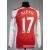 Alexis Sanchez signed red Arsenal no.17 home jersey, season 2014-15,Puma, long-sleeved with BARCLAYS PREMIER LEAGUE sleeve badges, club crest and sponsor logo, reverse lettered ALEXIS, signed in black marker pen on reverse, size M, bears pitch marks on sleeves
