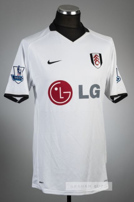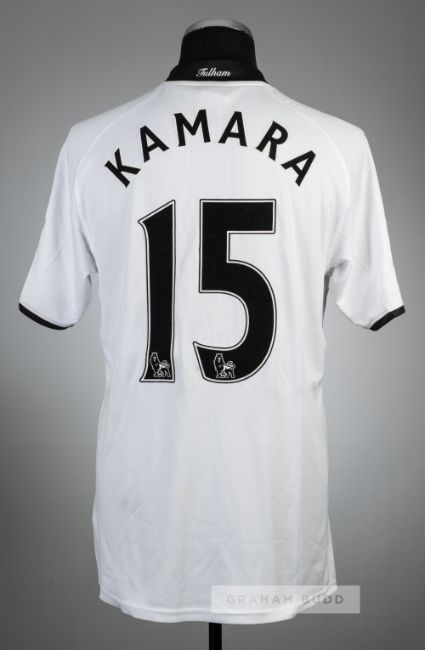 Diomansy Kamara white Fulham no.15 home jersey, season 2008-09,Nike, short-sleeved with BARCLAYS PREMIER LEAGUE sleeve badges, club crest and sponsor logo, reverse lettered KAMARA, size