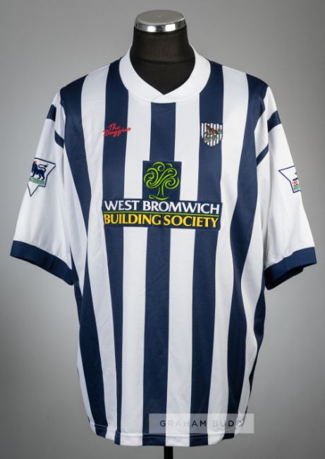 Des Lyttle signed navy and white West Bromwich Albion no.25 home jersey, season 2002-03,The Baggies, short-sleeved with THE FA PREMIER LEAGUE sleeve badges, club crest and sponsor logo, reverse lettered LYTTLE, signed in black marker pen on number two on reverse, size 50-52in.