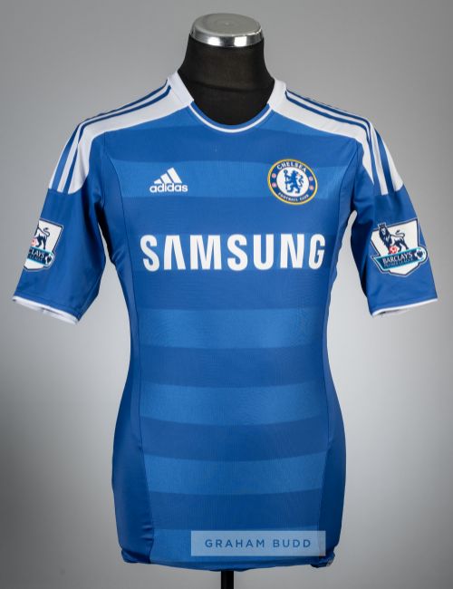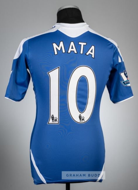 Juan Mata blue Chelsea no.10 home jersey, season 2011-12,Adidas, player issued short-sleeved with BARCLAYS PREMIER LEAGUE sleeve badges, club crest and sponsor logo, reverse lettered MATA, size 6 UK
