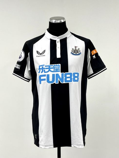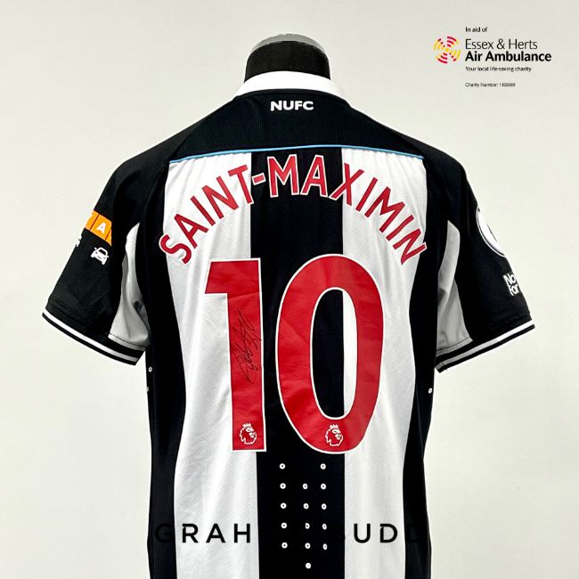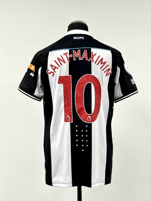match-issue, Castore, short-sleeved with PREMIER LEAGUE and NO ROOM FOR RACISM sleeve badges, club crest and sponsor logo, reverse lettered SAINT-MAXIMIN, signed in black marker pen on reverse, size L