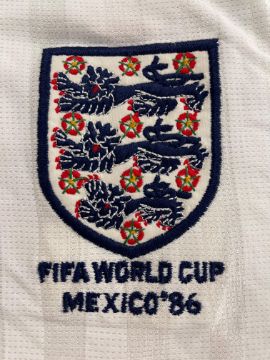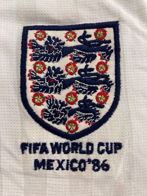 Umbro, short-sleeved, three lions badge, inscribed FIFA WORLD CUP, MEXICO '86, small stain, overall good