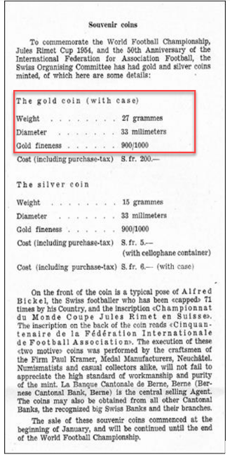 13. SPECIAL NOTICE FOR LOT 295, 16TH NOVEMBER WORLD CUP SPECIAL AUCTION