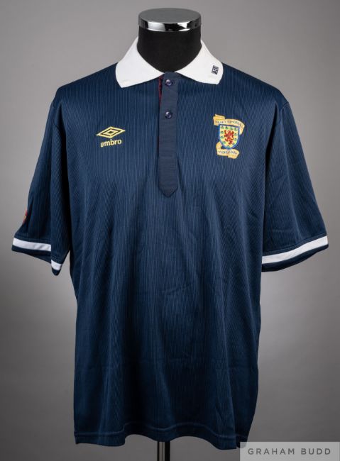 Umbro, L, with button-up collar and embroidered badge inscribed THE SCOTTISH FOOTBALL ASSOCIATION, the right sleeve and collar embroidered SFA8, the reverse autographed by Ally McCoist, the interior Umbro label with handwritten P