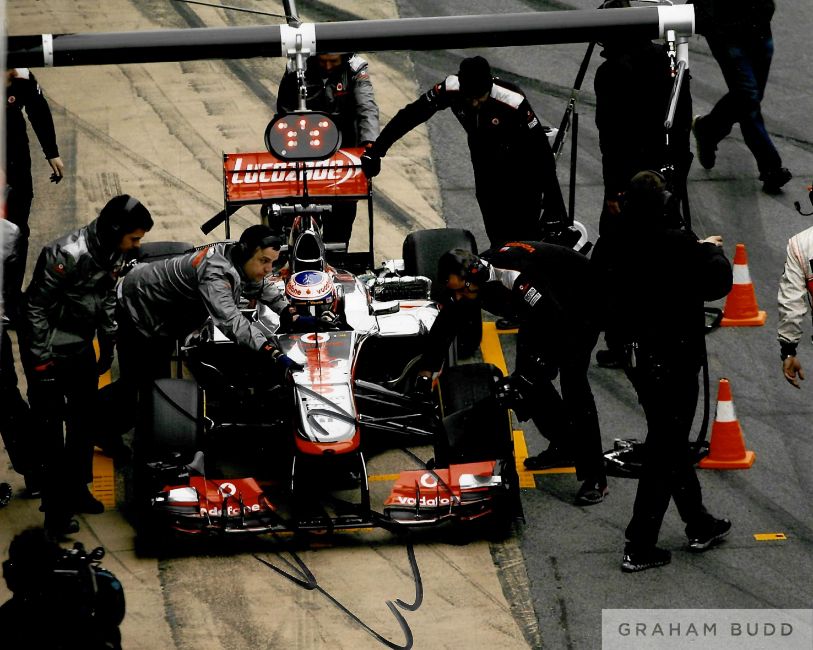 Jenson Button (UK) signed McLaren collection,includes signed book 'Jenson Button, How to be a F1 Driver', signed to cover page with black sharpie; also included is 8 by 10in. signed McLaren F1 Racing photo by Jenson Button. Comes with Certificate of Authenticity and photo proof of signing, (3)