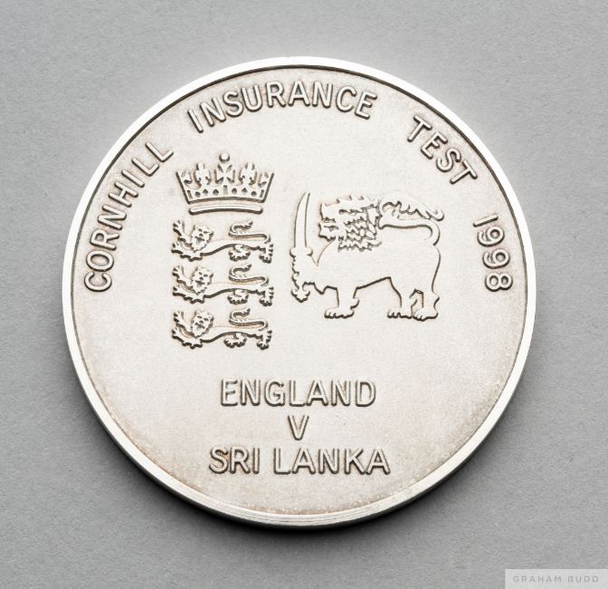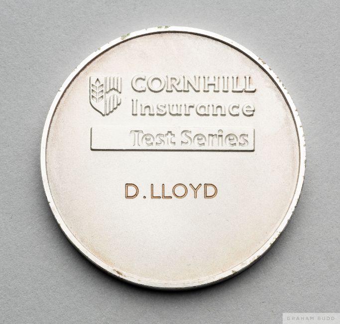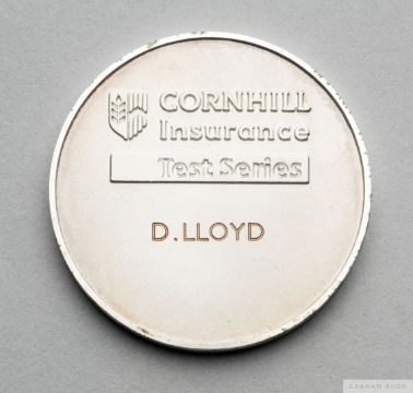 David Lloyd white-metal 1998 Cornhill Insurance Test Series medalthe obverse inscribed Cornhill Insurance Test 1998, ENGLAND V. SRI LANKA, the reverse inscribed CORNHILL Insurance, Test Series, D. LLOYD, in original fitted caseThe following Lots 187 to 221 relate to the cricket career of David "Bumble" Lloyd. See player bio at foot of description for Lot 187Provenance: David Lloyd