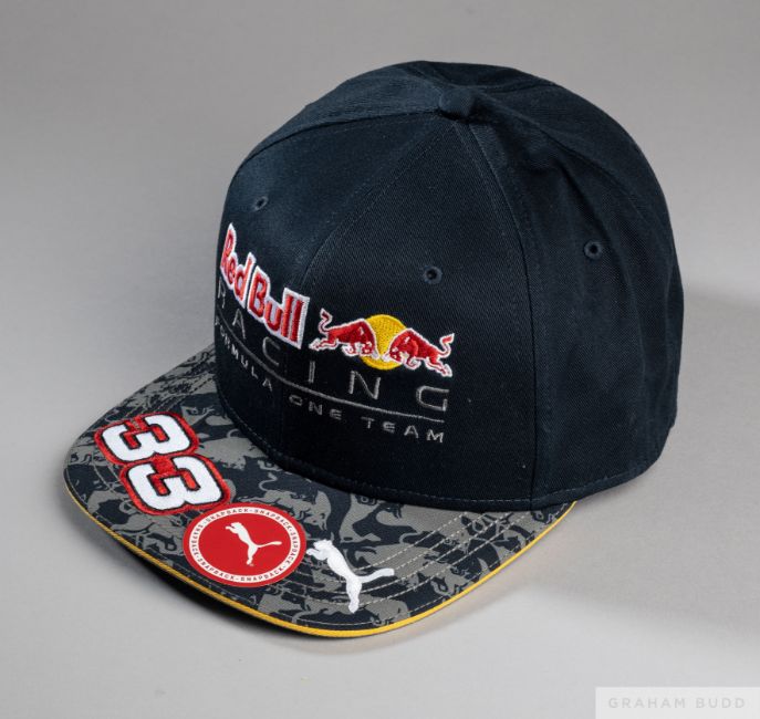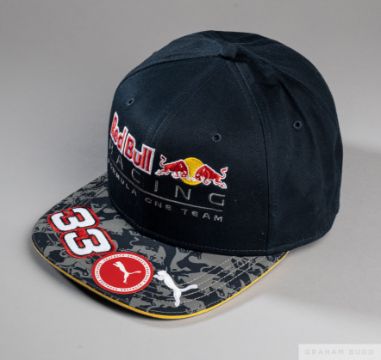Max Verstappen signed blue Red Bull F1 capthe peak embroidered 33, the underside of peak signed