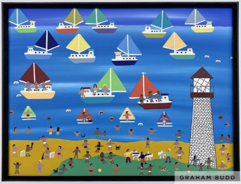 Gordon Barker (British b.1960) 'Painters at the beach'