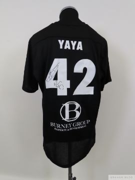match spare, Nike, size XXL, short-sleeved with sponsors logos, inscribed CHARLIE DUKES MEMORIAL CUP 14TH  MAY 2023, reverse lettered YAYA, signed in fine black marker pen on reverse