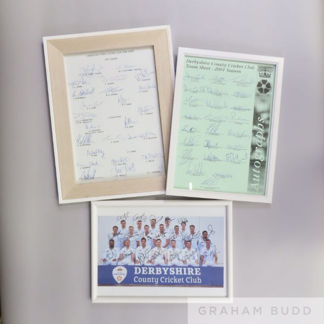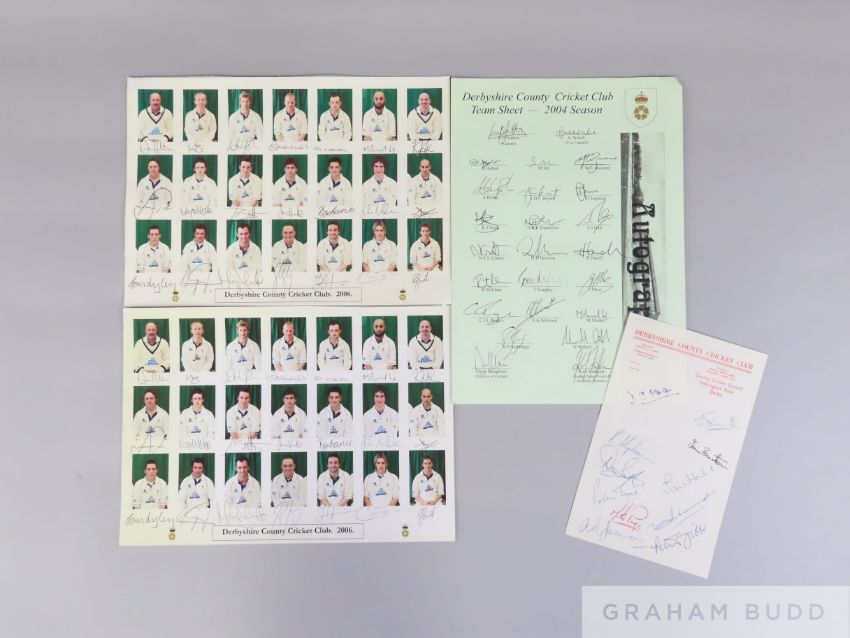 Six signed pieces relating to Derbyshire County Cricket Club,