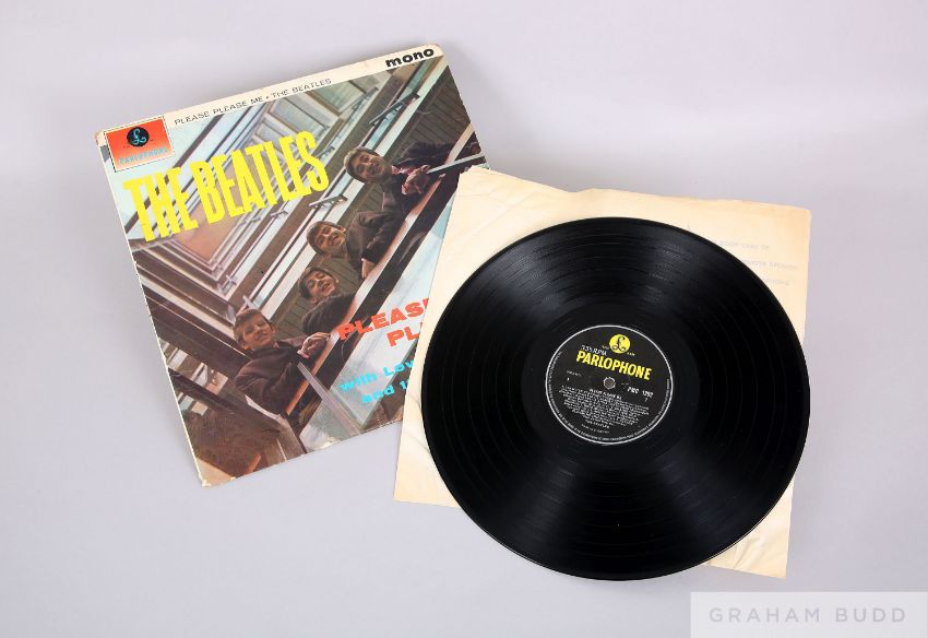 The Beatles - Please Please Me album, Parlophone Records PMC 1202, 1963, matrix number XEX 421-1N, second pressing with Northern Songs credit for "I Saw Her Standing There", "Misery" and "Do You Want to Know a Secret?" with Ernest J Day printer credit of the back of the sleeve to the right and large MONO in the top right hand corner on the cover and Angus Bean photographic credit in the bottom right. The vinyl shows light marks and hairline scratches, but plays through very well with no skips or sticks. The cover is splitting slightly in the bottom right corner and there is some water damage on the back and to the bottom, along with storage and age related marks and it has its original inner sleeve.  This is from the second pressing of the Beatles' debut album, and it is believed there were approximately 12,000 originally issued.