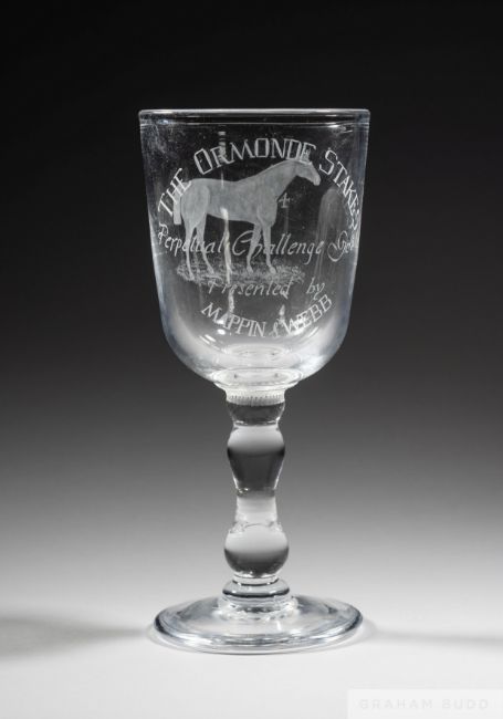 presented by Mappin & Webb and in the form of a glass goblet engraved with a portrait of Ormonde and inscribed with the race details, height 22cm., fine original condition