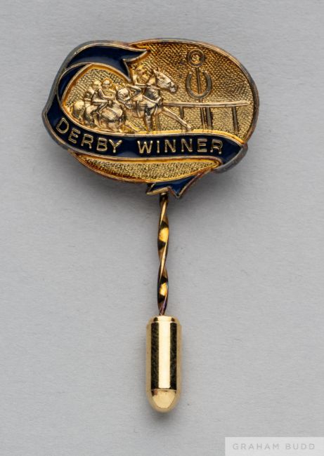 Pat Eddery silver-gilt and enamel Derby Winner stick pin by Spink of London,