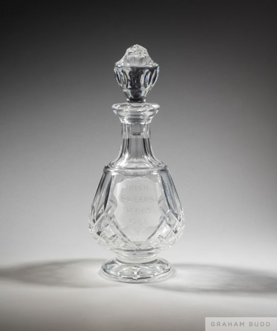 In the form of a crystal decanter & stopper, inscribed with race details, height 32cm., fine, original condition