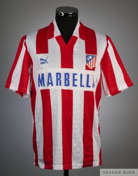 Manolo Alfaro red and white No.9 Atletico Madrid short-sleeved shirt, 1992, Puma