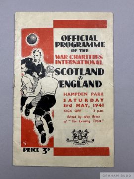 Scotland v. England International match programme, 3rd May 1941 lacking staple, some cover staining