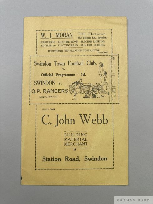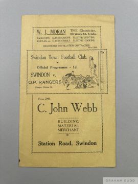 Swindon Town v. Queen's Park Rangers match programme, 28th December 1937 folds, some creasing and rusty staple