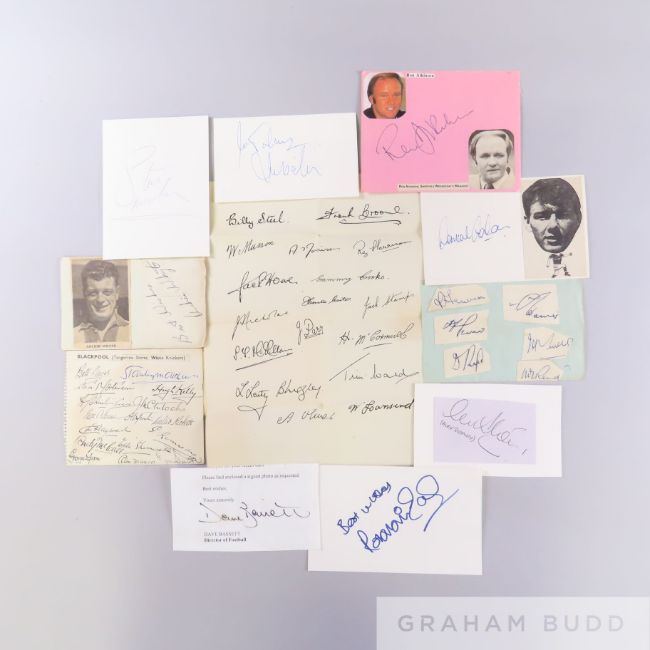 A large collection of football autographs from the 1930s up to the 1990s,  including Blackpool FC circa 1948 with Stanley Mathews, Walter Rickett etc.
