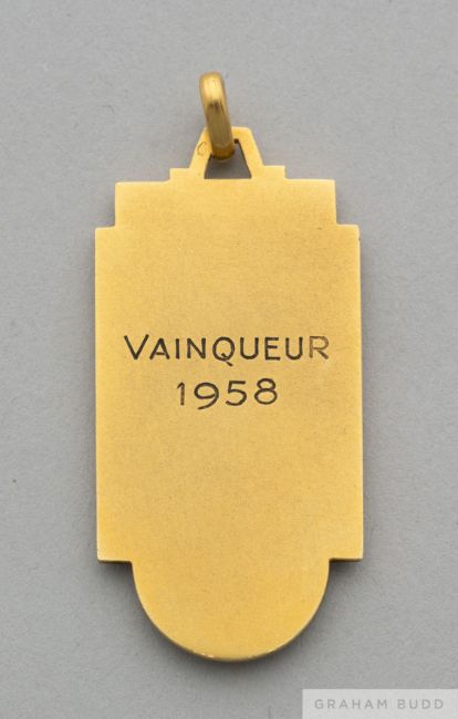 Raymond Kopa continental gold and enamel 1958 European Cup Winners medal,  the obverse inscribed COUPE DES CHAMPIONS EUROPEENS, the reverse inscribed VAINQUEUR 1958 with ring suspension In the third year of the competition Real Madrid successfully retained the European Cup and this was Raymond Kopa's second of his three-in-a-row winners medals. In the match played on 28th May 1958 at the Heysel Stadium, Real Madrid defeated Milan 3-2 Provenance: Mullock Madeley, Football Memorabilia including The Raymond Kopa Collection, 11th April 2001, Lot 608 Raymond Kopa was integral to the legendary Real Madrid team of the 1950s, playing and winning the European Cup three years in a row, the club winning the first five finals since the competition's inception. Often considered one of the best players of his generation, Kopa was an attacking midfielder agile, quick, and known for his dribbling, play making and prolific scoring. Awarded the Ballon d'Or in 1958, in 1970, he became the first football player to receive the Legion d'honneur and in 2004, Pele named him one of the 125 Greatest Living Footballers at a FIFA Awards Ceremony. The following lots 621 to 668 relate to the career of Raymond Kopa