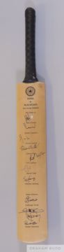 signed by 11 players including Sachin Tendukar in black marker pen on the face above the printed players names
