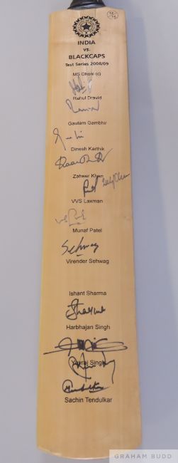 India v Blackcaps Test Series 2008-09 signed cricket bat,