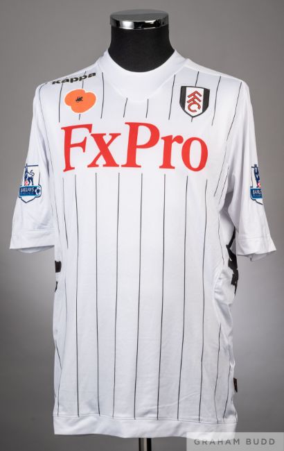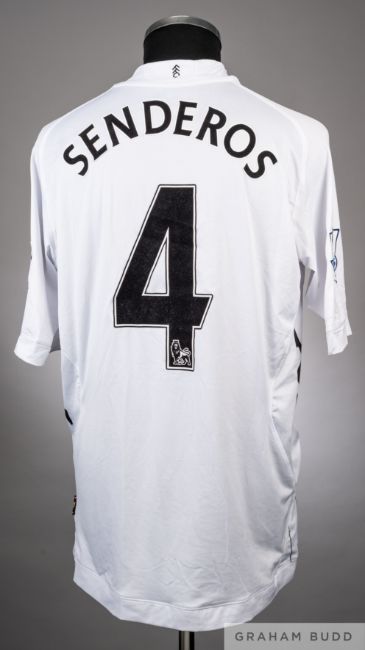 Philippe Sendros white/ black Fulham FC no.4 shirt from the 2012/13 season away game v Arsenal at the Emirates stadium that took place on 10/11/12