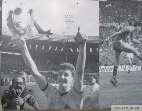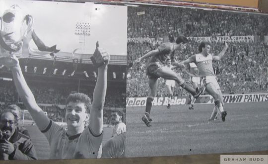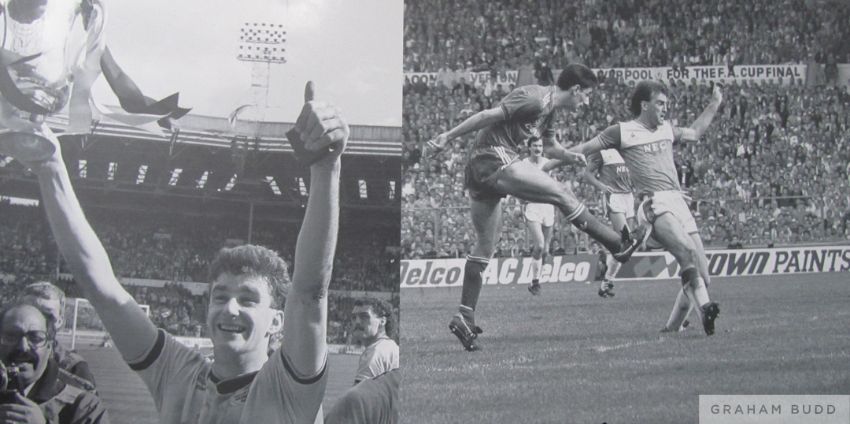 Liverpool's John Aldridge and Ian Rush in action, Wembley Stadium Sign,