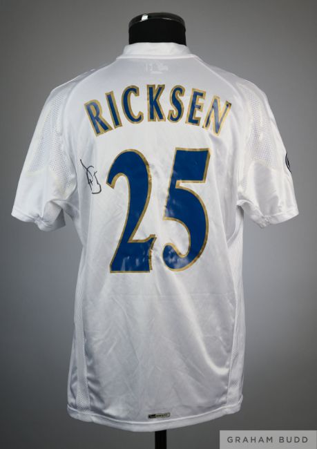 with crew-neck collar and embroidered cloth badge, the reverse lettered RICKSEN, the reverse also autographed by Ricksen, the right sleeve with UEFA Cup flash and a Fernando Ricksen autographed Foundation short-sleeved shirt, No.2 (2)
