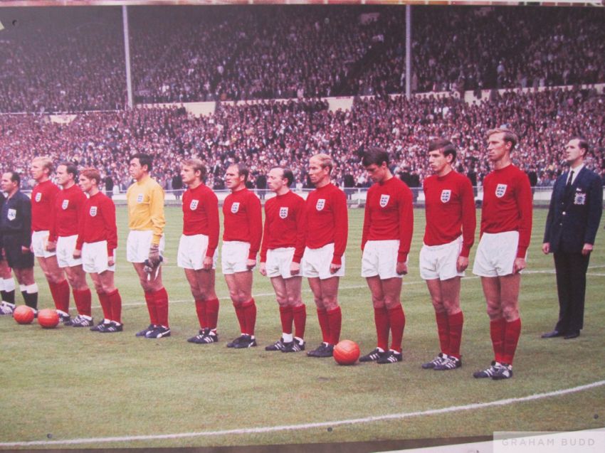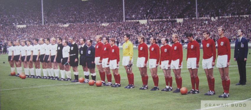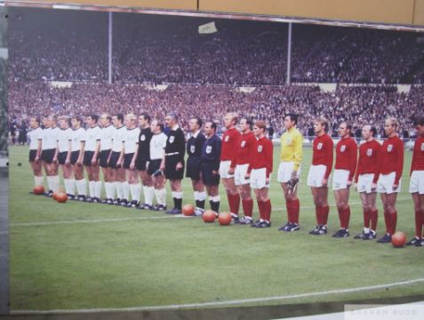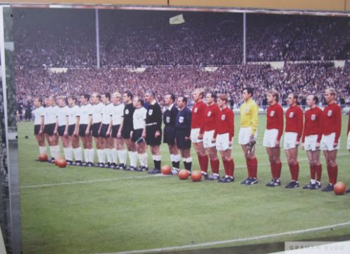 England v West Germany 1966 World Cup Final team line-ups, Wembley Stadium Sign,