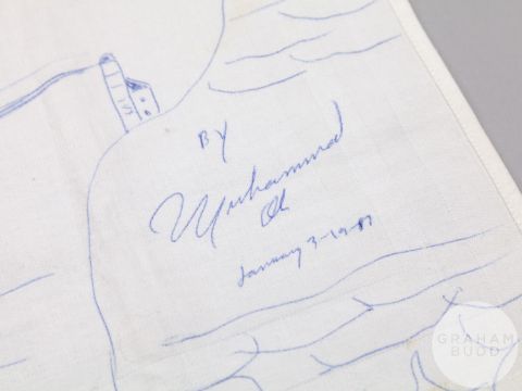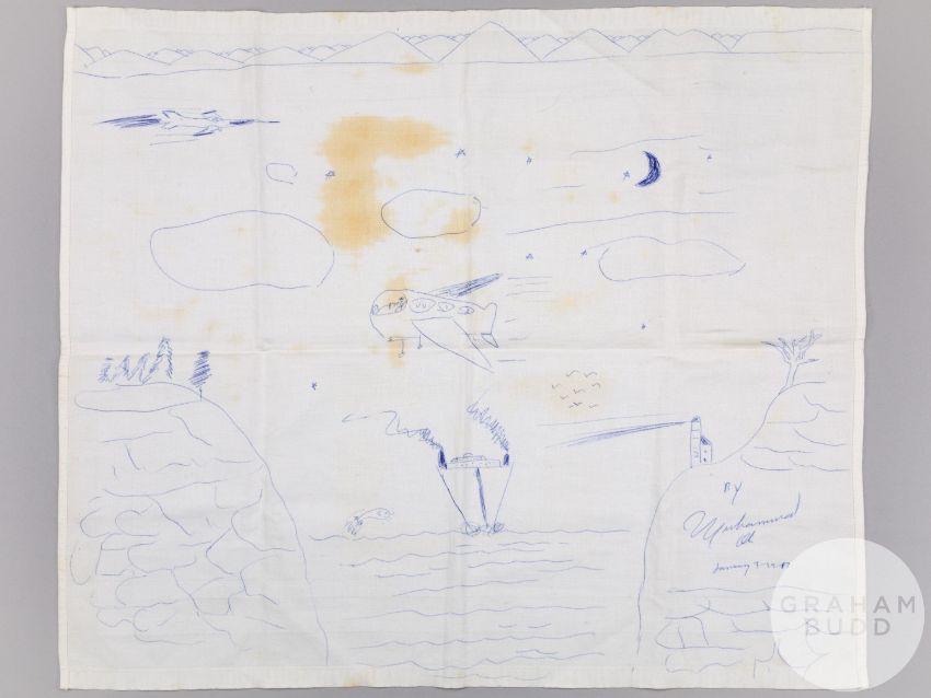 The drawing was done by Muhammad Ali when he was travelling to Dubai on British Caledonian Airways and was gifted to the vendor (member of the cabin crew) by Ali at the end of the flight