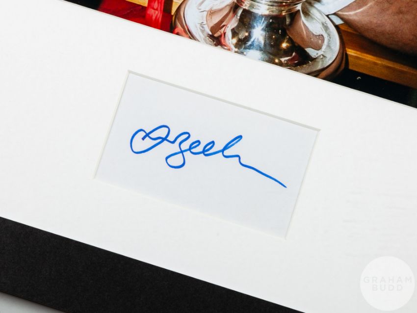 16 x 12in. colour photo mounted above Beckham's signature in blue marker, framed & glazed, 66.5 x 49cm.